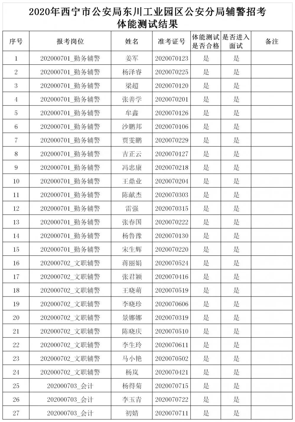 2020年西宁市公安局东川工业园区公安分局警务辅助人员招聘体能测试结果公示及面试通知
